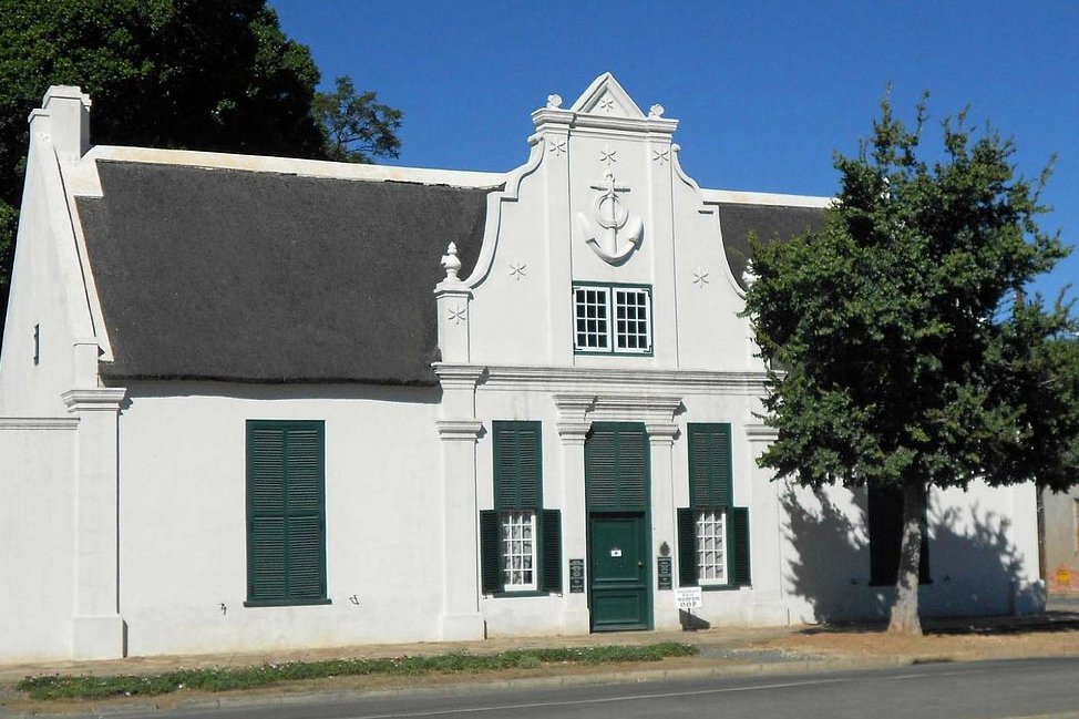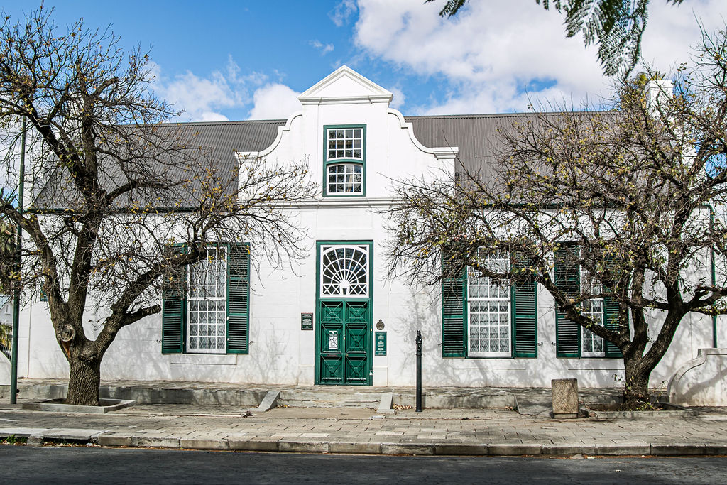 The former Residency, situated diagonally opposite Reinet House at the end of Parsonage Street, and forming a unique architectural complex with it, is a well-preserved example of the early 19th Century Cape Dutch H-shaped house.