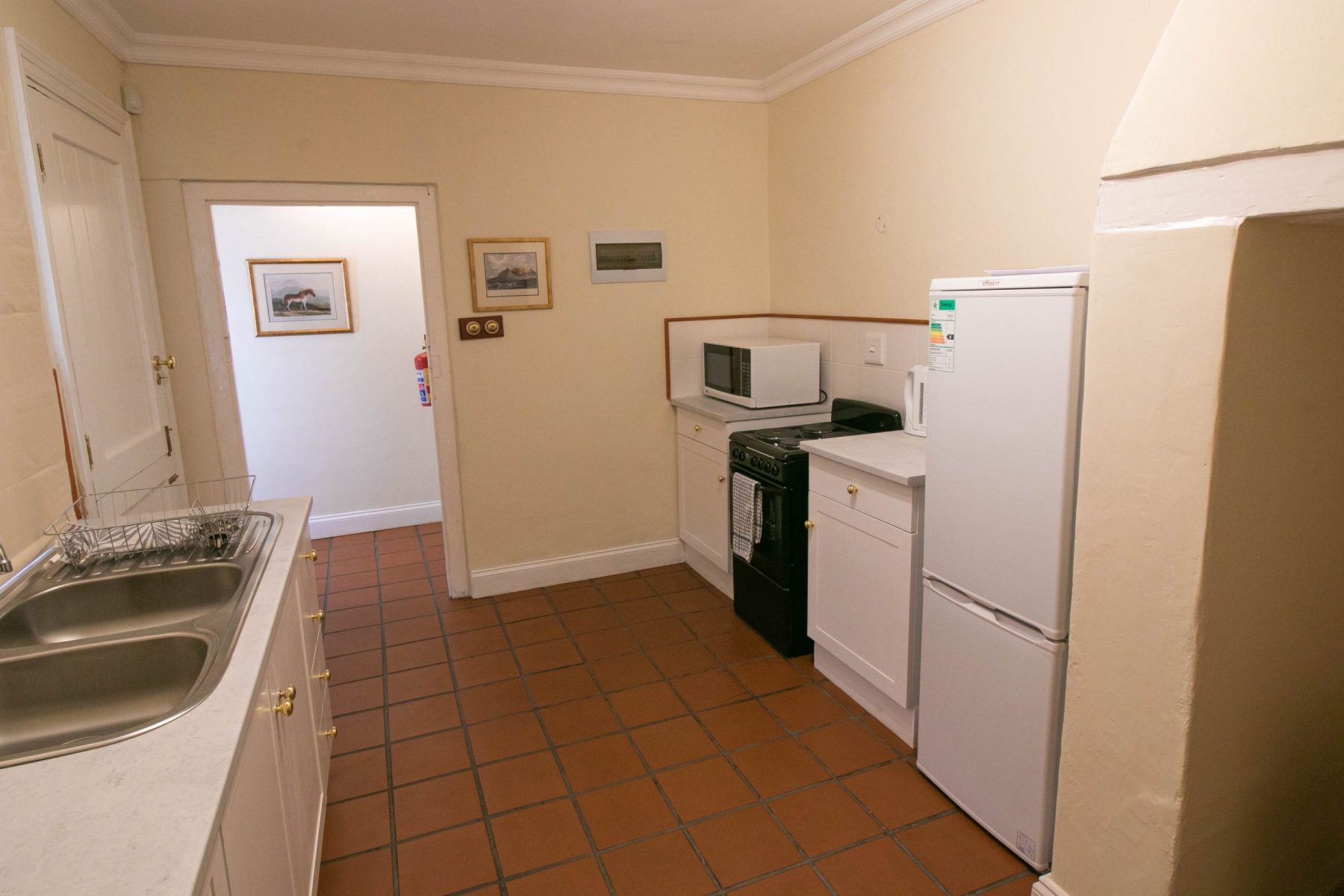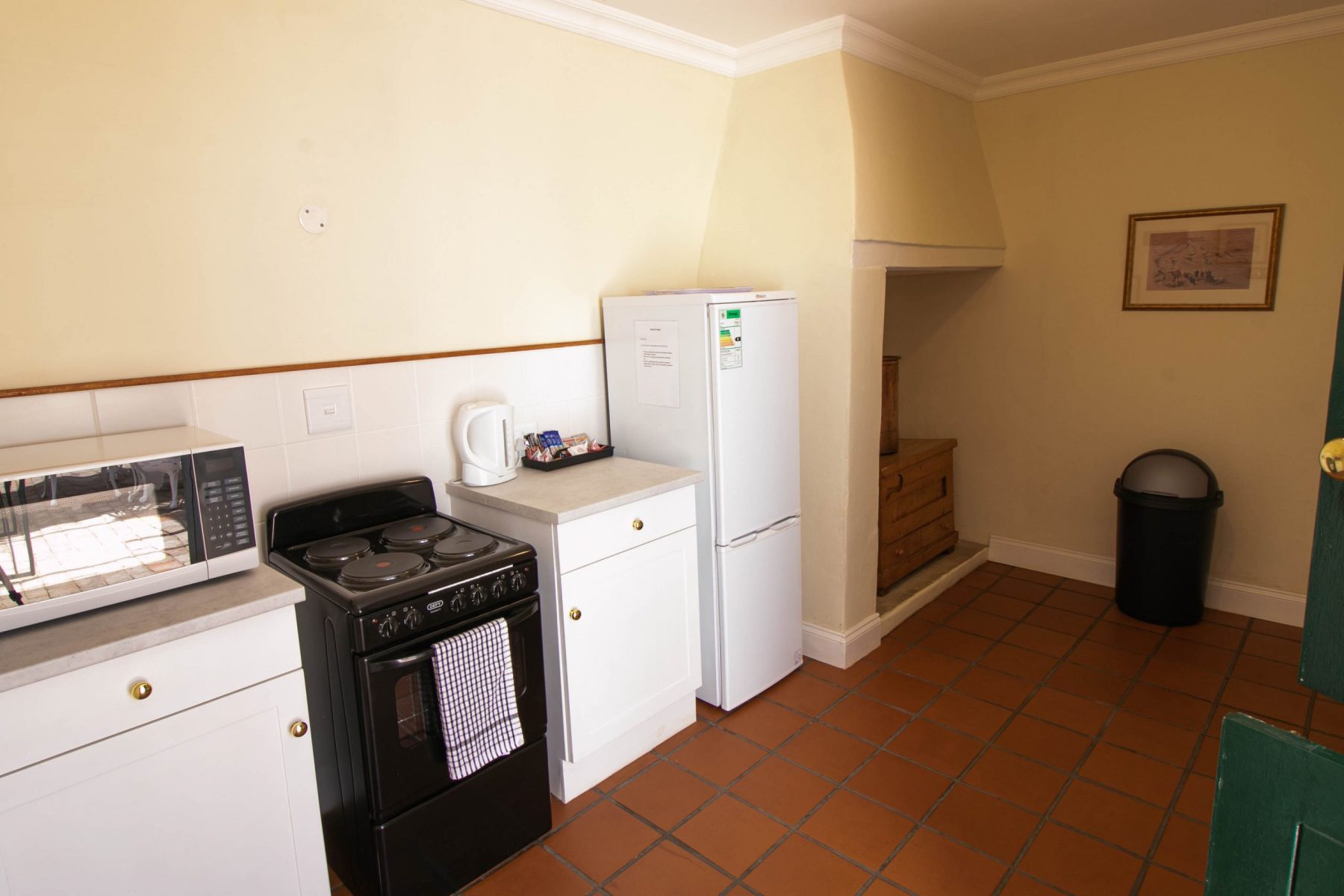 If required, this unit can be booked together with the adjoining garden cottage, which has one bedroom with a double bed and an en-suite shower bathroom (see “7A Cross Street – garden cottage”, on this website). If such a joint booking is made, an inter-leading door from the kitchen of the garden cottage (which is normally kept locked) can then be opened to provide joint direct access to the patio and dining/sitting area of the main house.