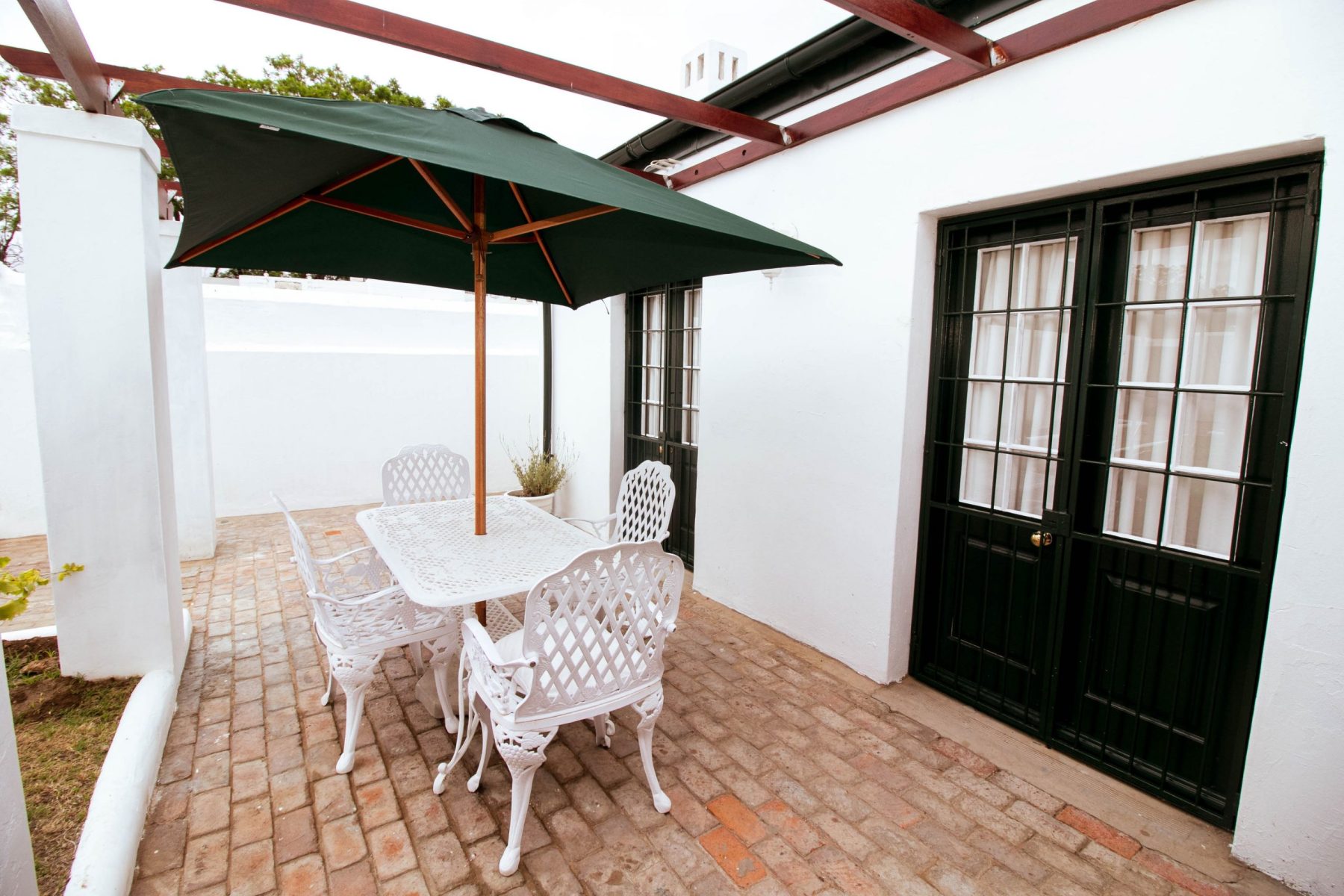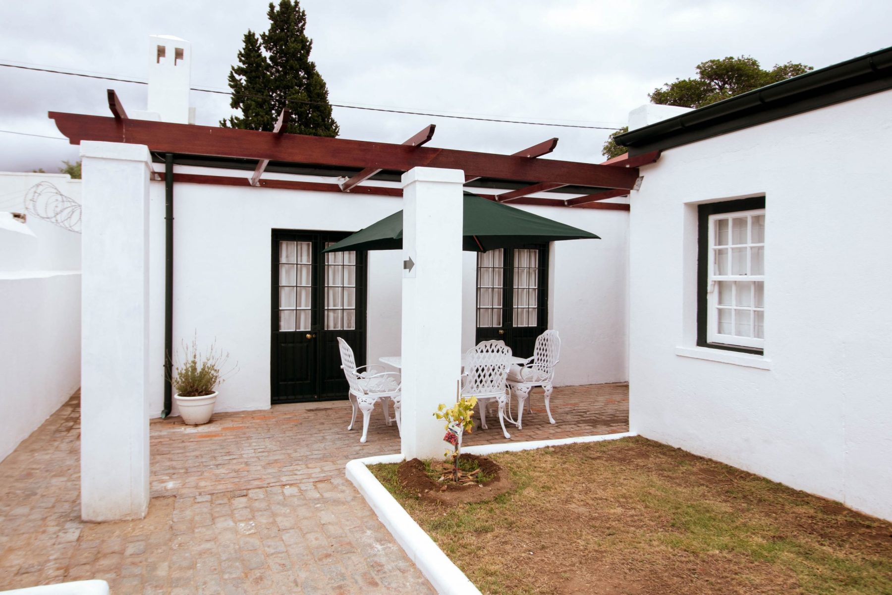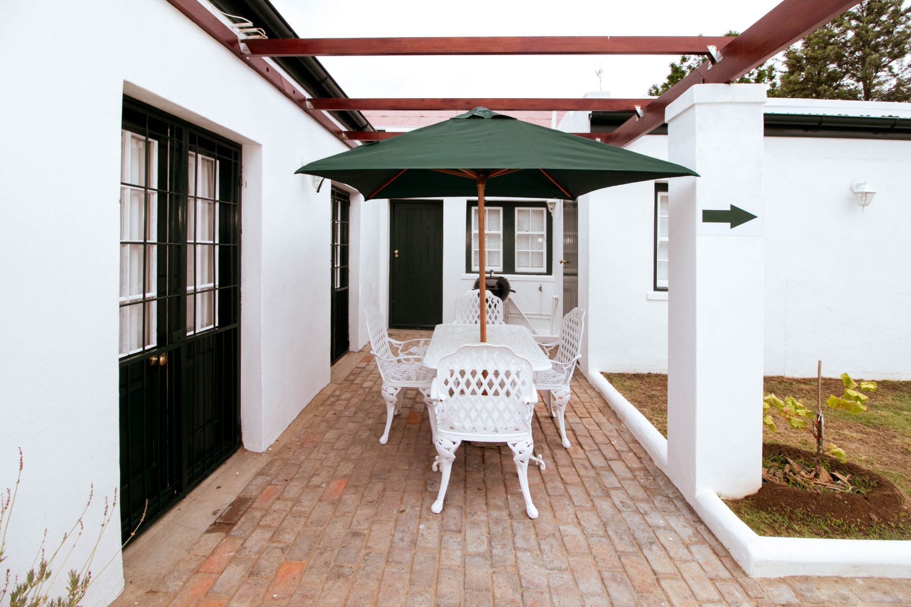This charming Karoo house is immediately adjacent to Parsonage Street, in the historic centre of Graaff-Reinet. It has been fully restored recently and offers two bedrooms, one with an antique four-poster double bed and one with two single beds, both with en-suite bathrooms (one with a bath and a shower, and the other with a shower).
